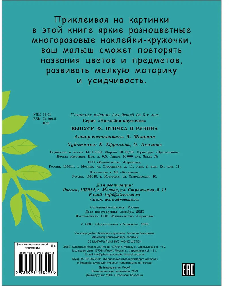 Наклейки-кружочки. Выпуск 23. Птичка и рябина-30% +9