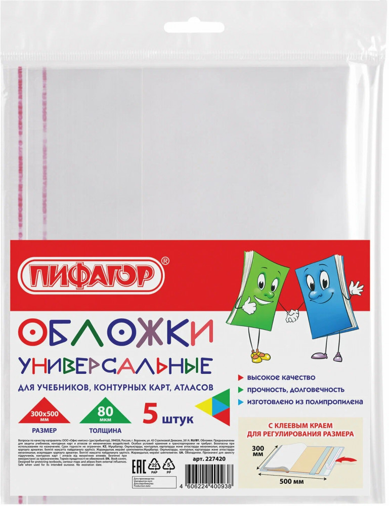 Пифагор Комплект обложек для учебников и тетрадей+27 размер А4 прозрачные плотность качество совместимость А4
