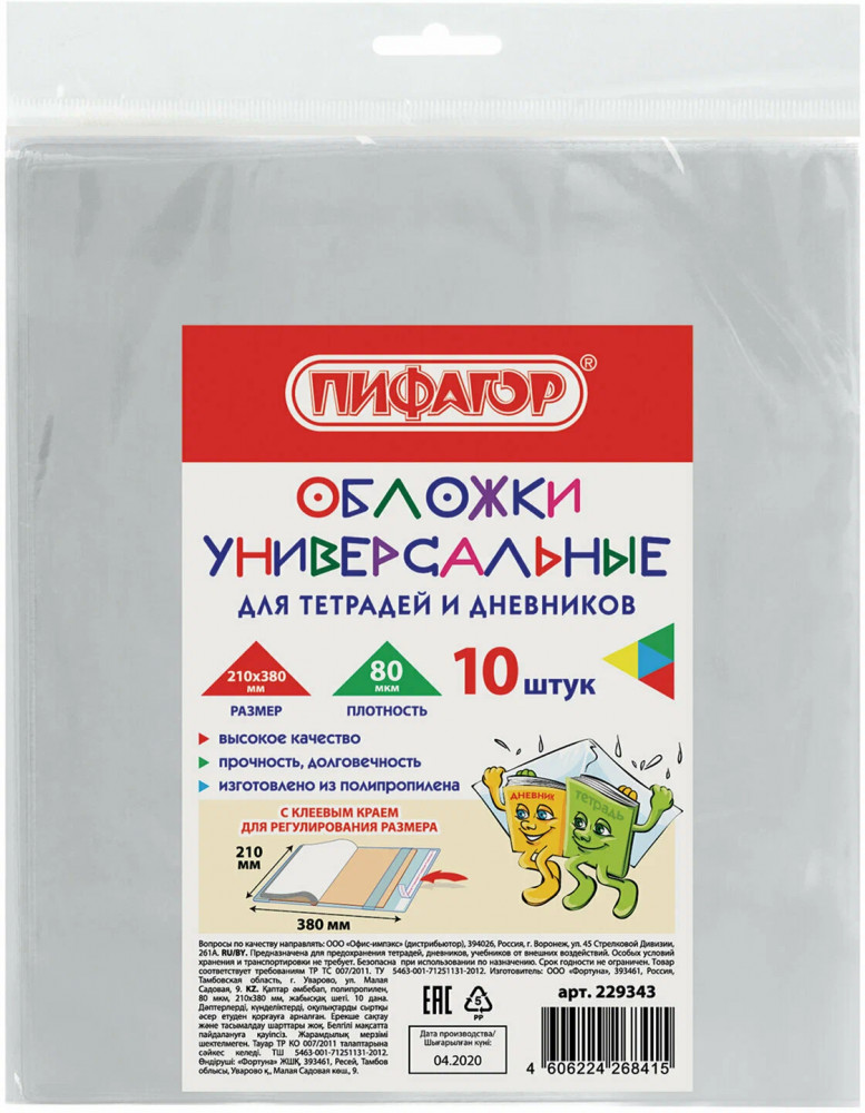 Пифагор Комплект обложек для тетрадей и дневников-25% +8
