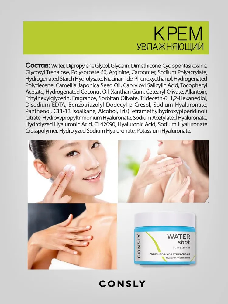 Consly Крем для лица с гиалуроновой кислотой и ниацинамидом увлажняющий+233