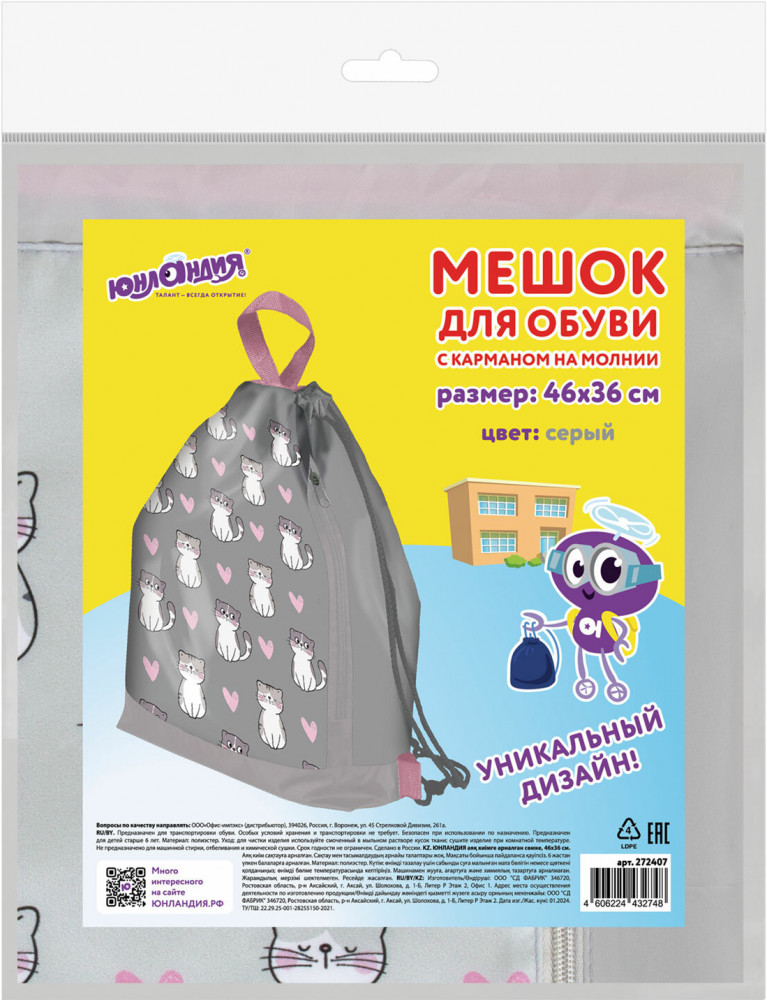 Юнландия Мешок для обуви «Kitties»-30% +36