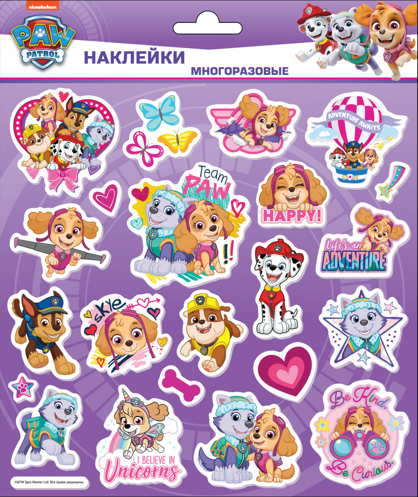 Наклейки − это не только развлечение для ребенка, но и польза: развитие мелкой моторики, двусторонней координации рук, воображения и фантазии. Многоразовые наклейки «Щенячий патруль» — это коллекция ярких стикеров, которая собрана специально для детей!