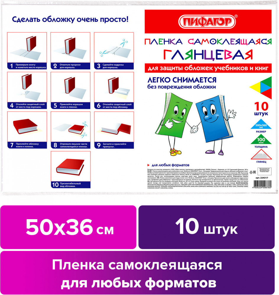 Пифагор Комплект плёнок самоклеящихся для учебников-20% +33 удобно быстро глянцевая пленка просто состояние учебников