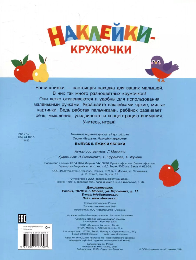Ясельки. Наклейки-кружочки. Выпуск 5. Ежик и яблоки-40% +8