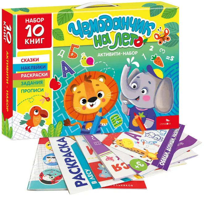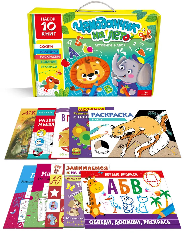 💳 Оплатить за товар можно при получении 🇰🇿 Есть бесплатная доставка по Казахстану от 1 дня 🎁 Копите бонусы с каждой покупки Комплект Активити-набор «Чемоданчик на лето» с развивающими книгами для дошкольника включает в себя 10 книг для занятий и отдыха вашего ребёнка: |