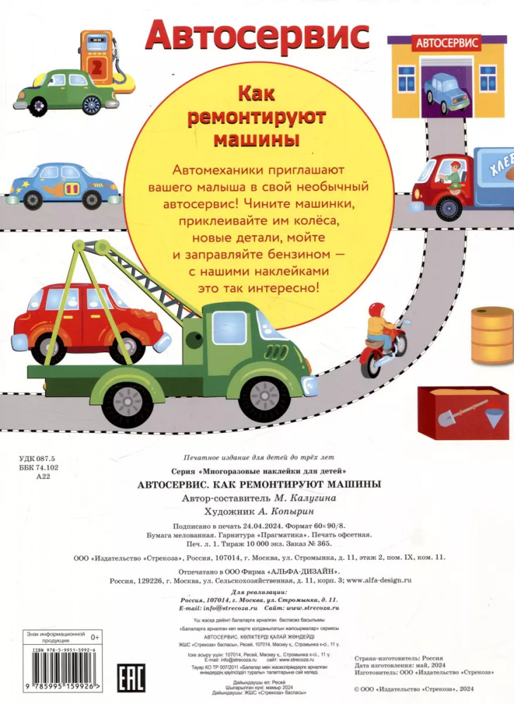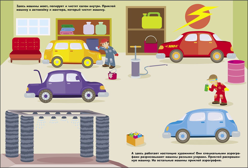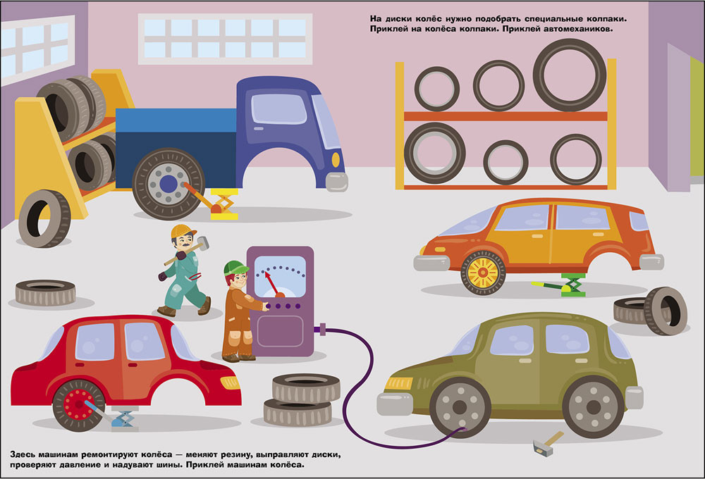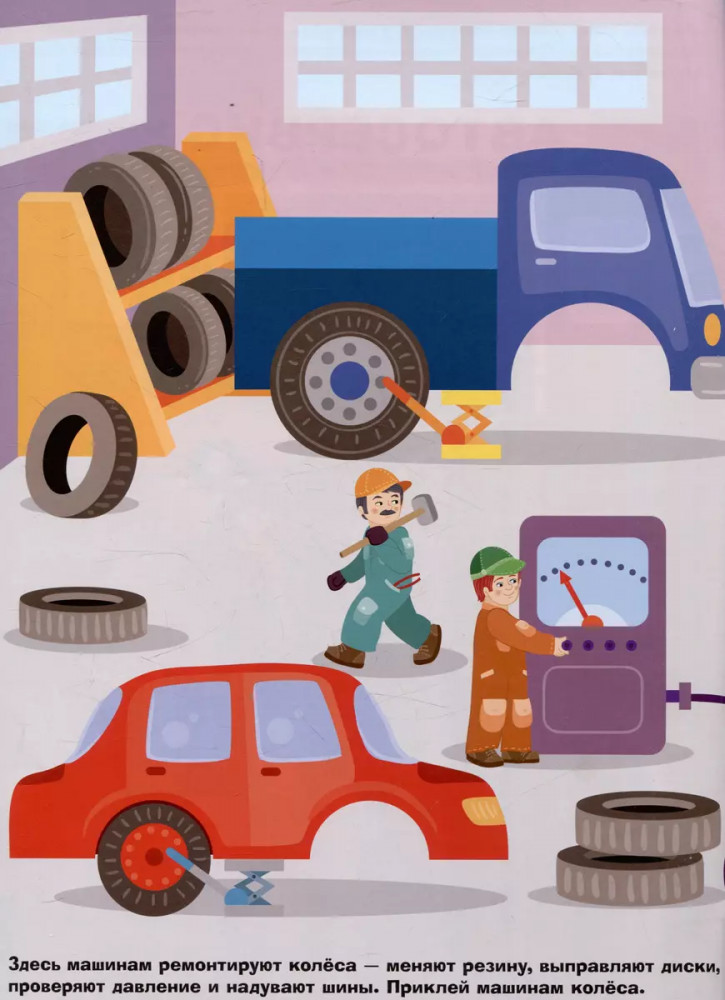 Серия: Многоразовые наклейки Автомеханики приглашают вашего малыша в свой необычный автосервис! Чините машинки, приклеивайте им колёса, новые детали, мойте и заправляйте бензином — с нашими наклейками это так интересно! |