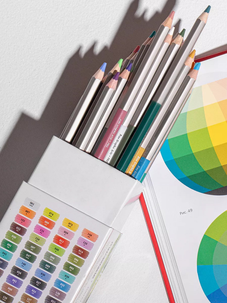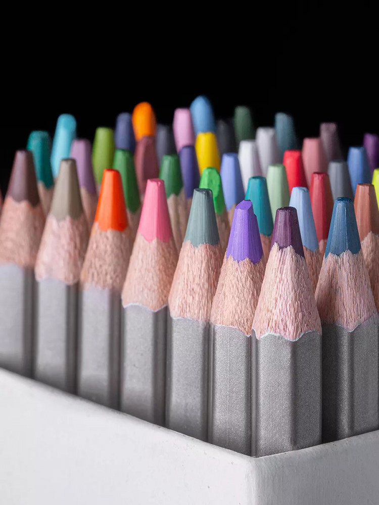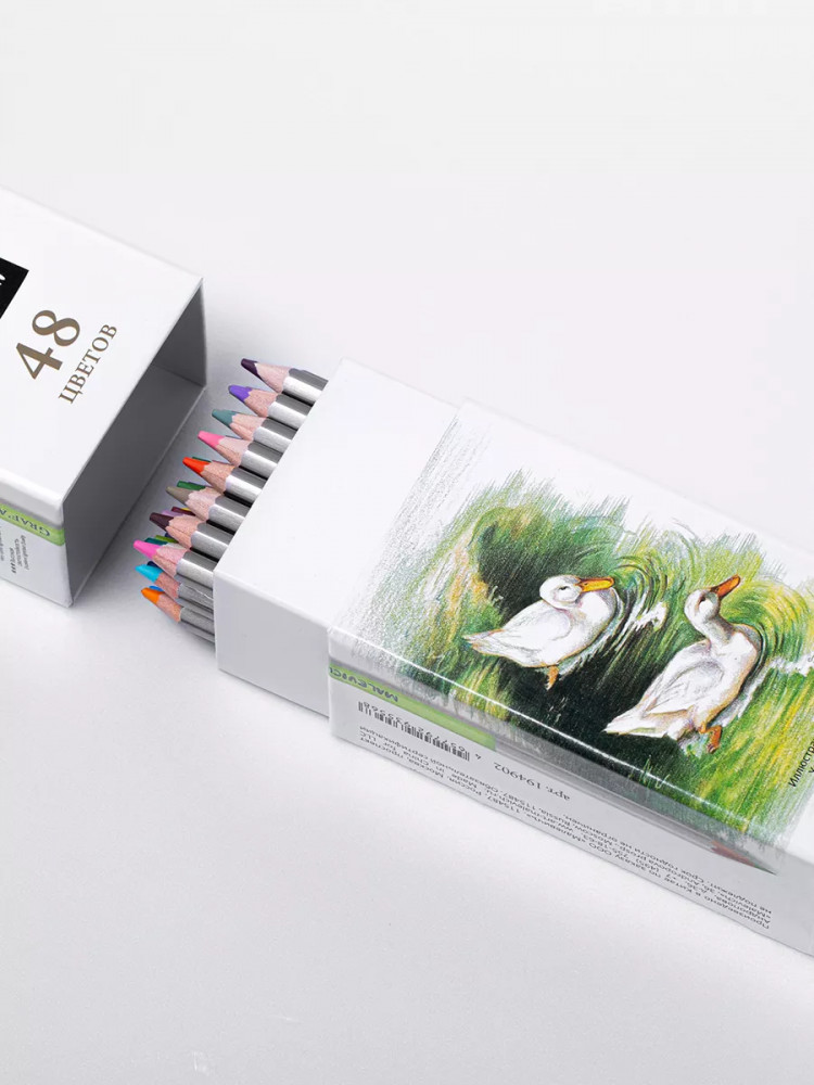 Простой, но лаконичный дизайн не будет отвлекать во время работы, а цветной корпус послужит ориентиром в поиске нужного оттенка. Шестигранный корпус не позволит карандашам кататься по столу, в отличие от круглых.