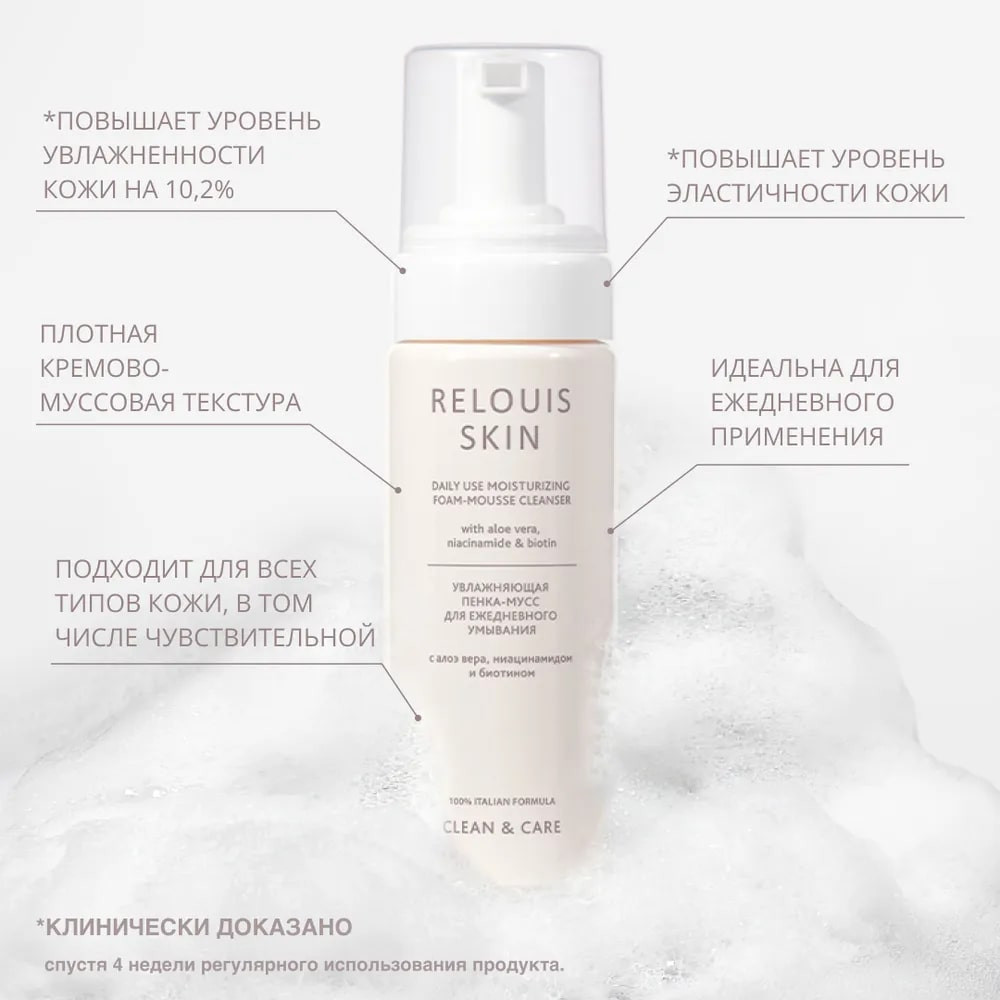 RELOUIS Пенка-мусс для умывания увлажняющая с алоэ вера и ниацинамидом-25% +126