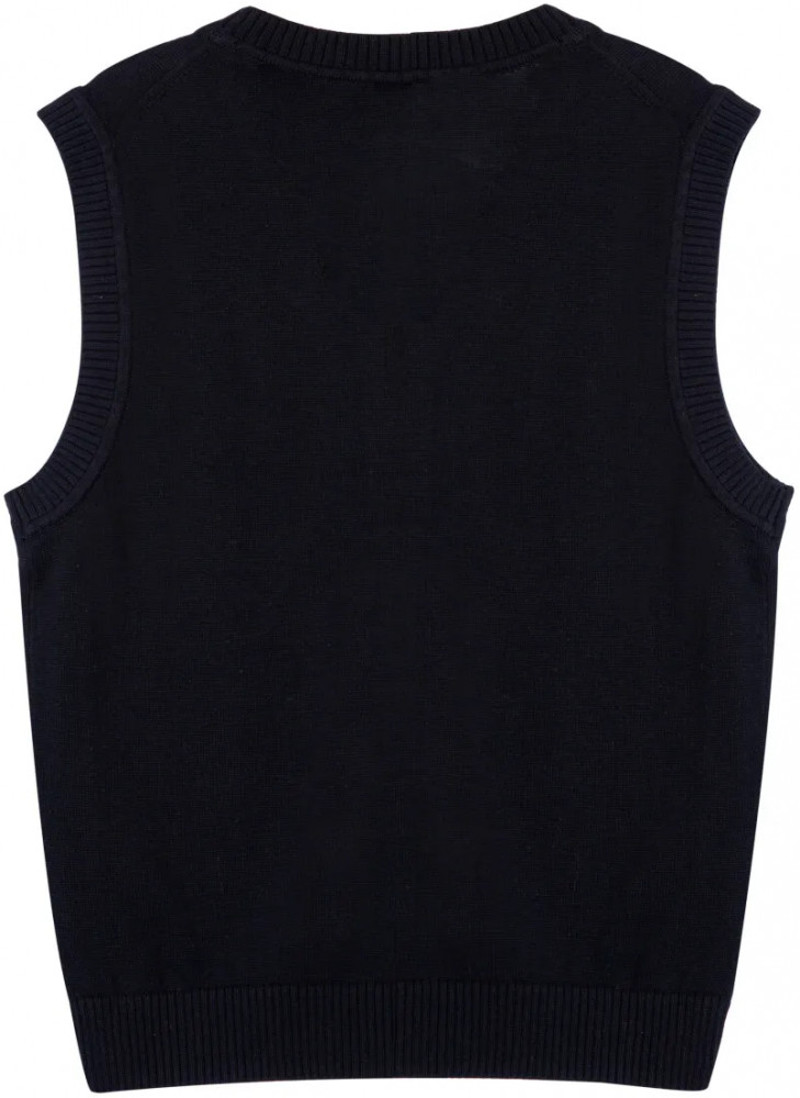 Классический синий школьный жилет на пуговицах для мальчика-подростка. Жилет прямого силуэта выполнен из вязаного трикотажа с высоким содержанием хлопка, что обеспечивает максимальный комфорт для школьника во время занятий. Жилетка в школу выглядит стильно благодаря лаконичному дизайну. Рубашка, футболка или поло плюс жилет для школьника составит красивый элегантный комплект для школы.