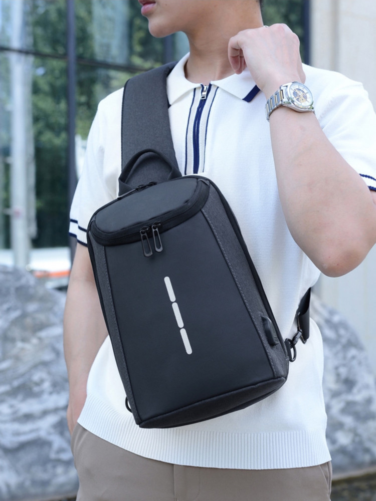 Однолямочный рюкзак — идеальный выбор для тех, кто ценит мобильность и функциональность. Несмотря на компактные размеры, сумка через плечо имеет вместительное отделение с карманами разного размера и подойдет для школы, колледжа, учебы, работы. Рюкзак помещает планшет с диагональю экрана до 9,7 дюймов, документы формата А5, книги, бумажник множество других необходимых предметов. USB-выход на внешней стороне позволяет заряжать устройства на ходу. Для этого нужно заранее поместить повербанк во внутренний карман, и подключить его к USB-кабелю внутри рюкзака. Жесткий каркас защитит ваше содержимое от деформации, а регулируемые лямки обеспечат идеальную посадку.