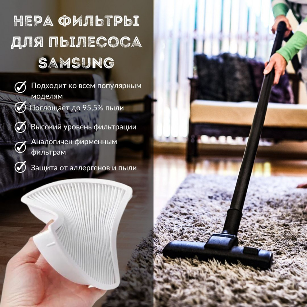 Фильтр HEPA для пылесоса SamsungВ данный момент этот товар отсутствует в продаже. Возможно, у нас найдется аналогичный или похожий товар здесь. Фильтр для пылесосов Samsung (Самсунг). HEPA фильтр для пылесоса Samsung. Посадочные размеры 125 × 110 × 20 мм. Размеры с бортиком 135 × 117 × 22 мм. Hepa фильтр для пылесосов Samsung подходит пылесосам для дома следующих моделей: Samsung SC4326, SC4332, SC4336, SC4352, SC4470, SC4471, SC4472, SC4473, SC4474, SC4475, SC4476, SC4477, SC4530, SC4535, SC4750, SC4757, SC4760, SC4761, SC4765, SC47S5 и т.д. Перед покупкой настоятельно рекомендуется измерить размеры своего фильтра для пылесоса SAMSUNG и сравнить с габаритами, указанными в характеристиках товара или в описаниях. Степень очистки — высокоэффективная, более 95%. Фильтр не моющийся, не рекомендуется чистить водой или пылесосом. Замена — раз в год, в зависимости от условий эксплуатации. Регулярная замена обеспечивает качественную очистку воздуха. Загрязненный фильтр уменьшает всасывающую способность пылесоса. Чистка и замена фильтра регулярно поможет сохранить максимальную производительность пылесоса и сэкономить на электроэнергии. Аналоги DJ63-00672A, DJ63-00672B, DJ63-00672D, DJ63-00672E. |