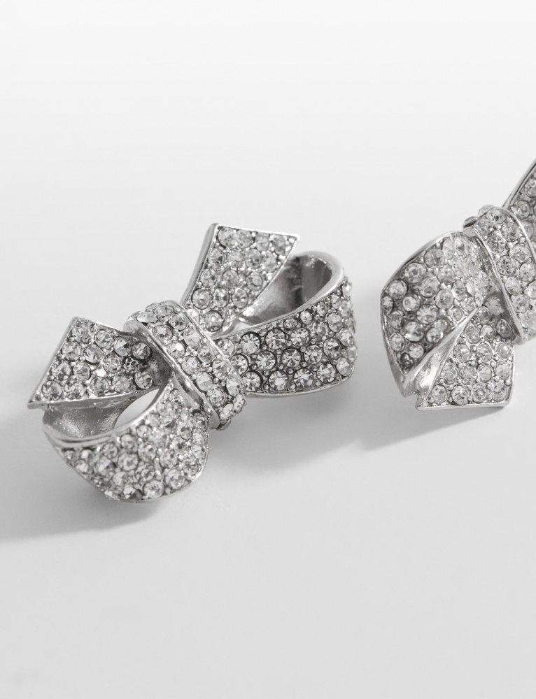 В данный момент этот товар отсутствует в продаже. Возможно, у нас найдется аналогичный или похожий товар здесь. Средний размер. Форма банта. Изделие украшено стразами. Металлическая застежка-защелка. |