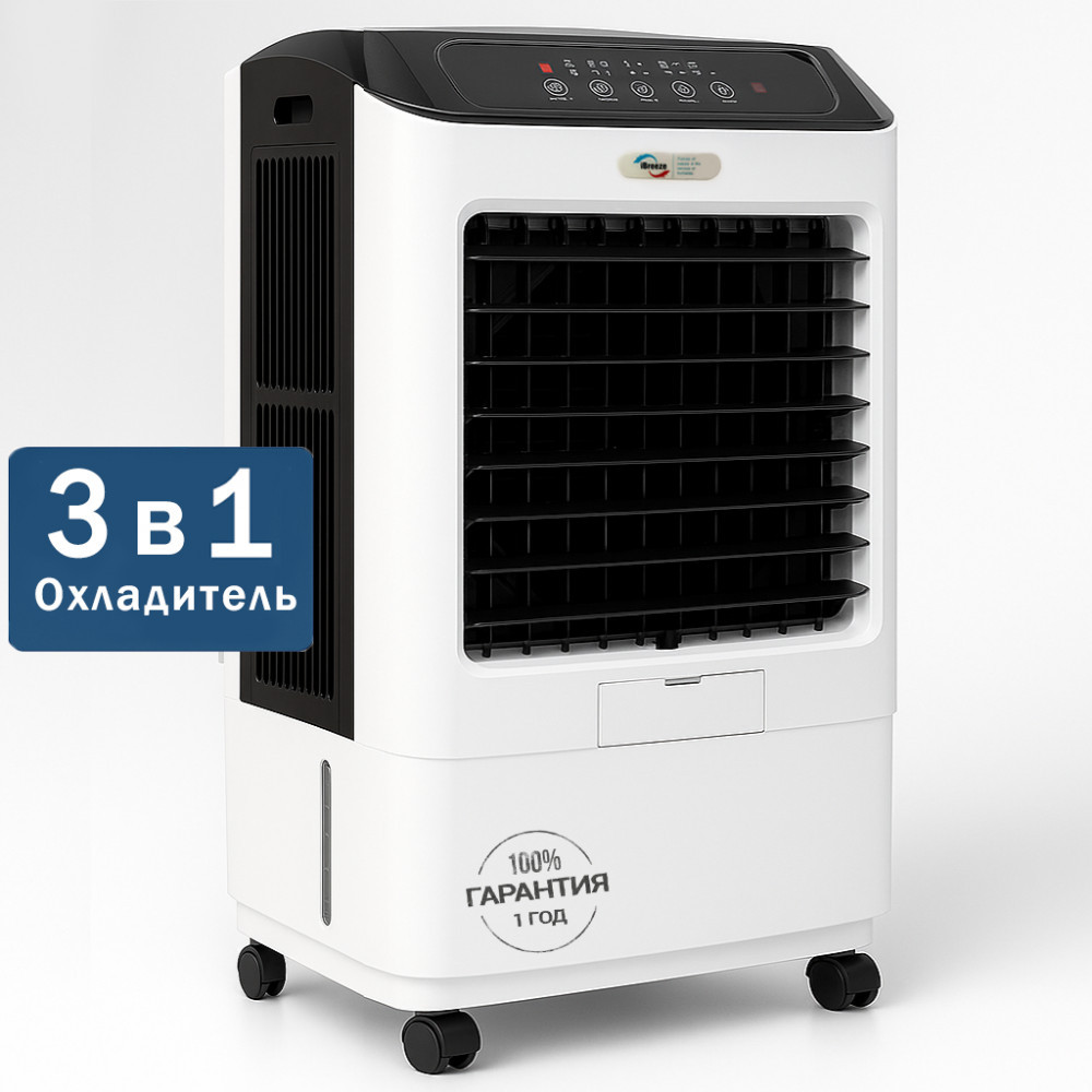 • это кондиционер? Нет, это испарительный охладитель 3-в-1. Он охлаждает поток воздуха через влажный испаритель, увлажняет и предварительно очищает его;