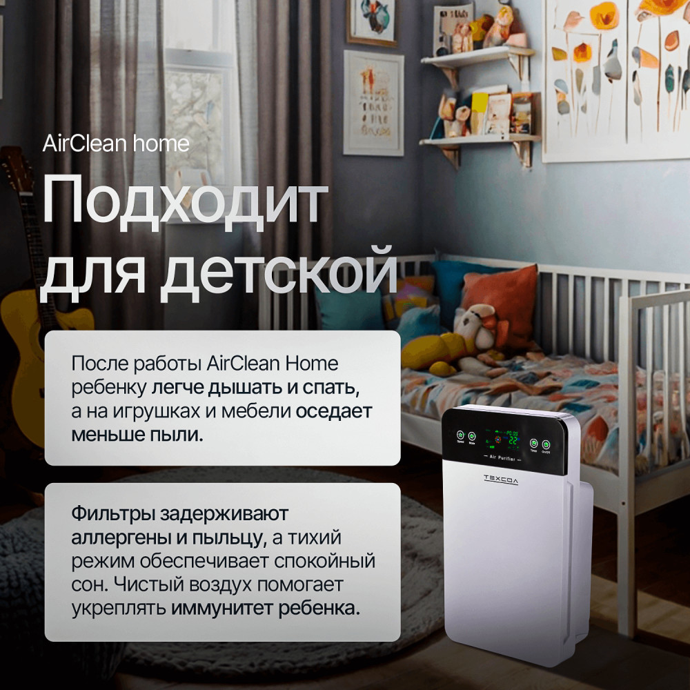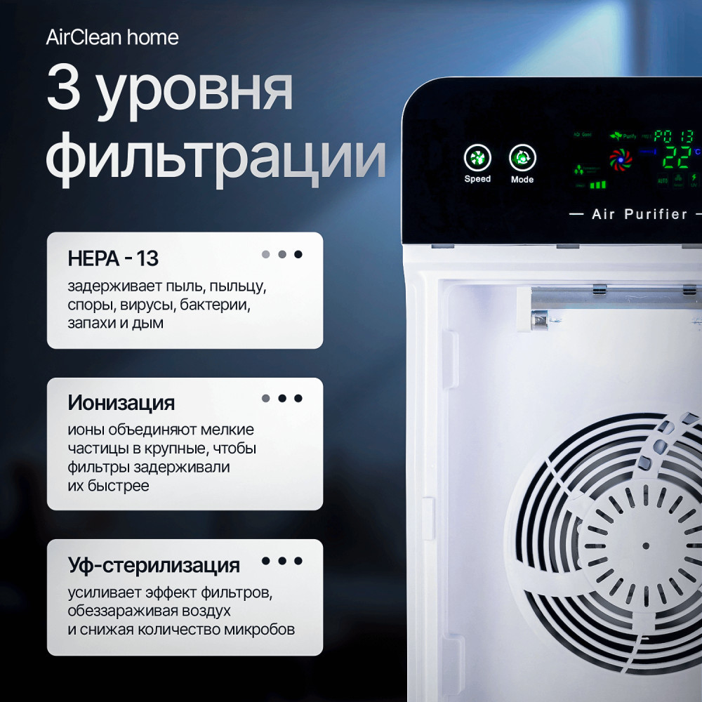 | ТЕХСОЛ Очиститель воздуха с HEPA-фильтром H13 AirClean Home+328 (бонусов)