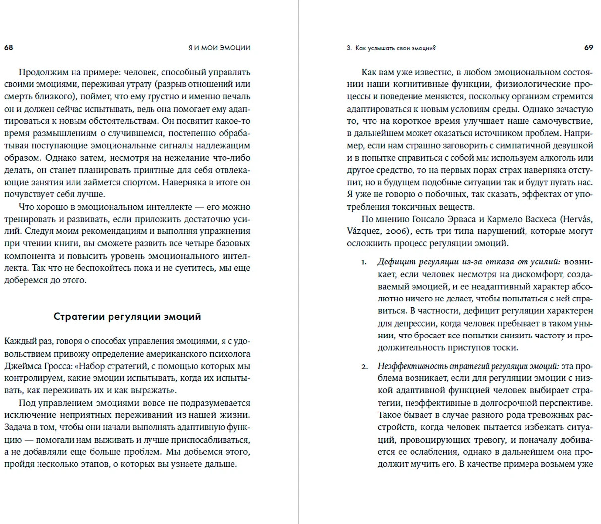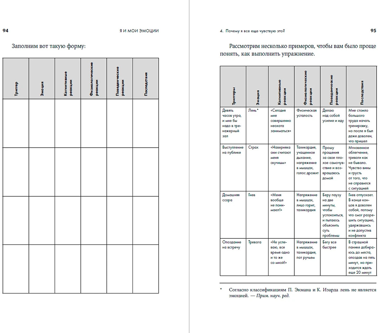 Книга, написана понятным и доступным языком без "заумных" терминов. Легка в прочтении, содержит много практических упражнений, которые учат отслеживать, анализировать и управлять своими эмоциями.