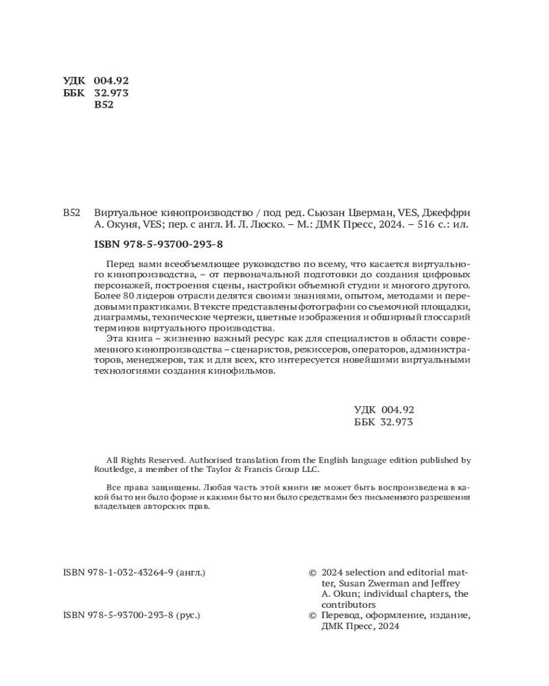 💳 Оплатить за товар можно при получении 🇰🇿 Есть бесплатная доставка по Казахстану от 1 дня 🎁 Копите бонусы с каждой покупки Перед вами всеобъемлющее руководство по всему, что касается виртуального производства, — от первоначальной подготовки до создания цифровых персонажей, построения сцены, настройки объемной студии и многого другого. Более 80 лидеров отрасли делятся своими знаниями, опытом, методами и передовыми практиками. В книге представлены фотографии со съемочной площадки, диаграммы, технические чертежи, цветные изображения и обширный глоссарий терминов виртуального производства. |