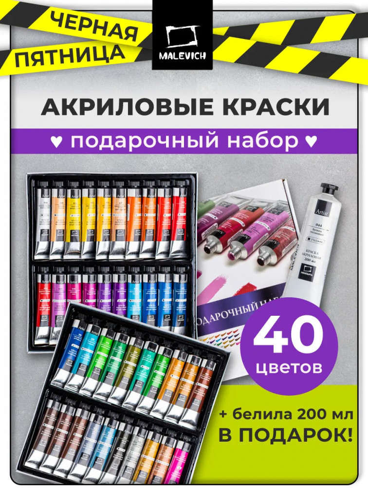 МалевичЪ Набор красок акриловых в тюбиках подарочный-35% +146