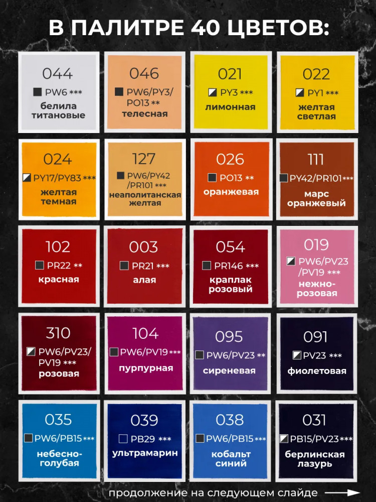 💳 Оплатить за товар можно при получении 🇰🇿 Есть бесплатная доставка по Казахстану от 1 дня 🎁 Копите бонусы с каждой покупки Акриловые краски от компании «Малевичъ» — это художественный глянцевый акрил для требовательных к качеству покупателей. |