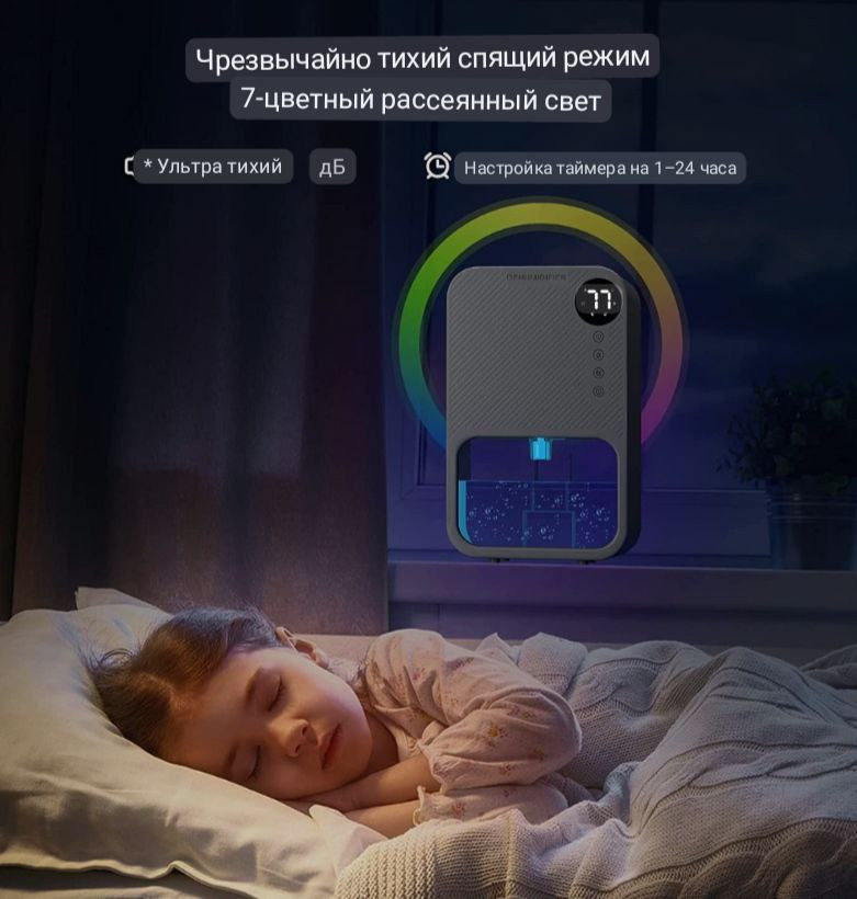 Осушитель оказался супер полезной находкой! Отлично работает, аккуратный дизайн и красивая подсветка.
