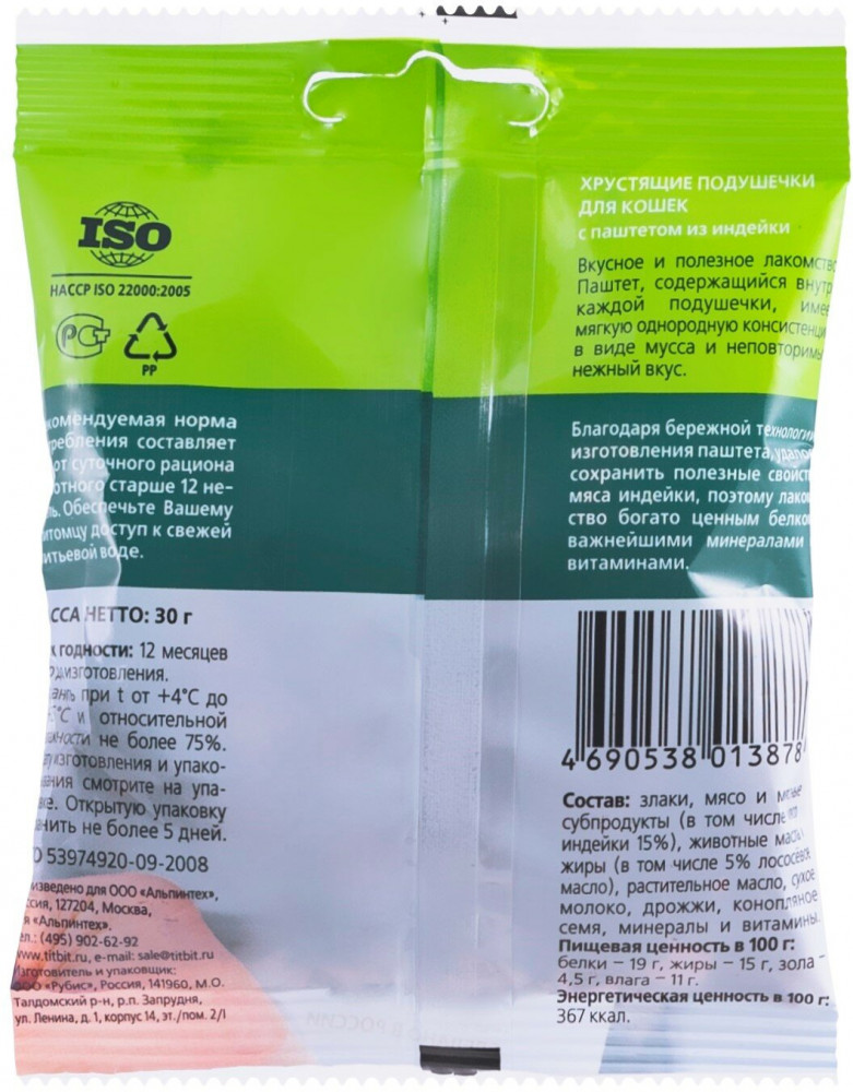 TiTBiT Набор лакомств для кошек «Хрустящие подушечки с паштетом из индейки»