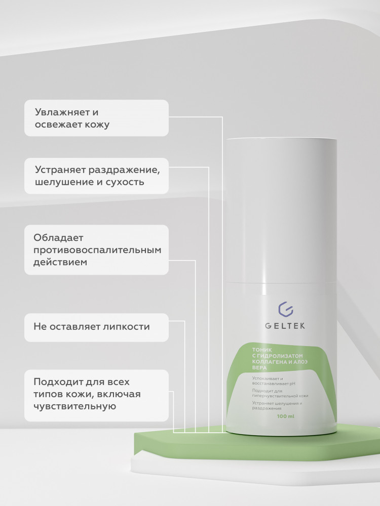 Geltek Тоник с гидролизатом коллагена и алоэ вераВ данный момент этот товар отсутствует в продаже. Возможно, у нас найдется аналогичный или похожий товар здесь. Тоник с гидролизатом коллагена и алоэ вера восстанавливает упругость и эластичность кожи. Сок лекарственного растения Aloe Vera оказывает противовоспалительное действие, устраняет раздражение, шелушение, сухость кожи. |