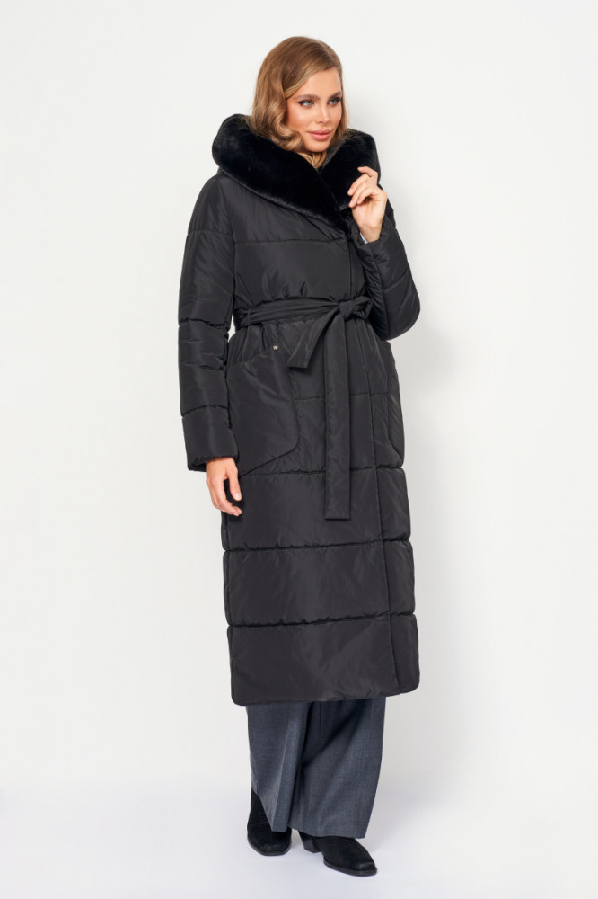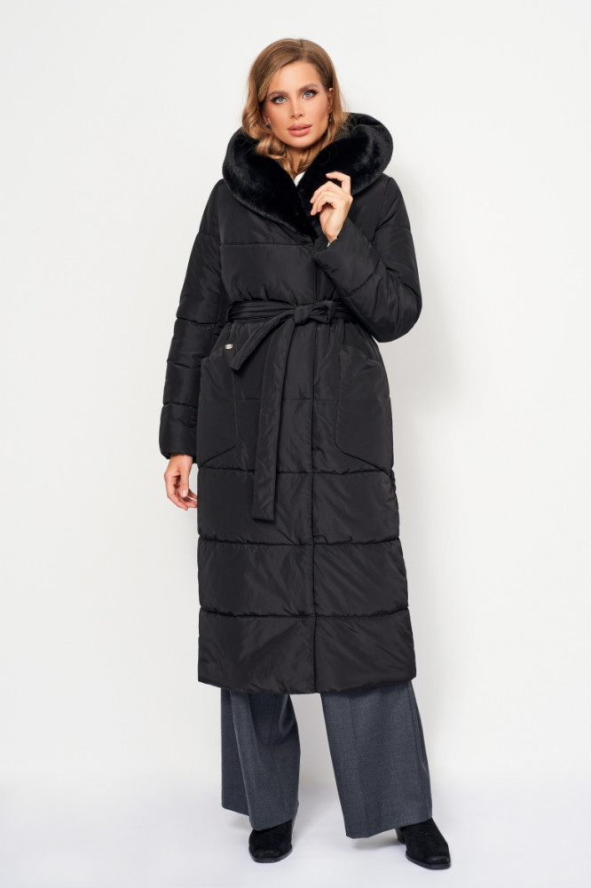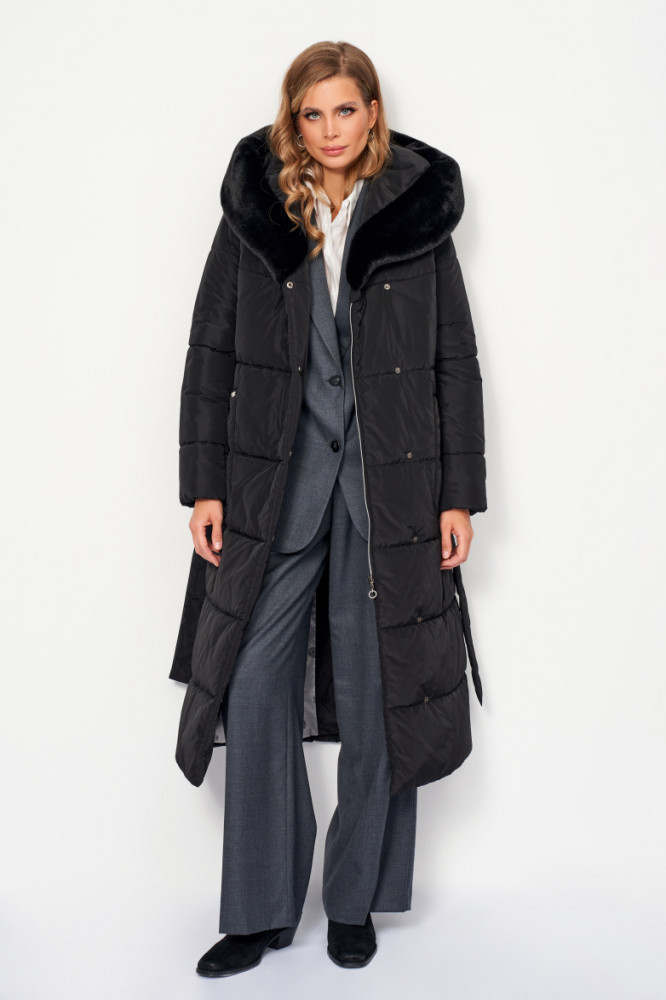 ElectraStyle Пальто плащевое с меховой отделкой