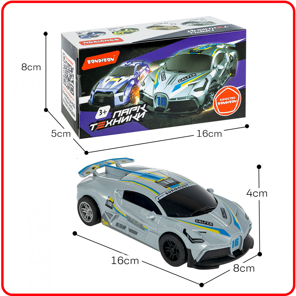 Bondibon Машина инерционная «Гоночная»В данный момент этот товар отсутствует в продаже. Возможно, у нас найдется аналогичный или похожий товар здесь. Серия: Парк техники Уменьшенная копия настоящего спорткара – мечта каждого маленького автолюбителя! Серебряная инерционная машина с эффектом дрифта от Bondibon – это модель в масштабе 1:24, которая имеет два режима движения и идеально подходит для сюжетно-ролевых игр. Гонка хорошо детализирована и оснащена инерционным механизмом движения pull back. Чтобы машинка поехала вперед, немного откатите ее назад и отпустите. Но это еще не все! Игрушечный транспорт может ехать прямо или дрифтовать. Режим движения можно выбрать при помощи переключателя на дне спортивной машины. Гоночная машинка с интересным функционалом подарит ребенку много часов увлекательной игры и поможет развить воображение, координацию движений, логическое и пространственное мышление. Инерционная машина с эффектом дрифта станет отличным подарком для мальчиков. Игрушка выполнена из качественных безопасных материалов. |