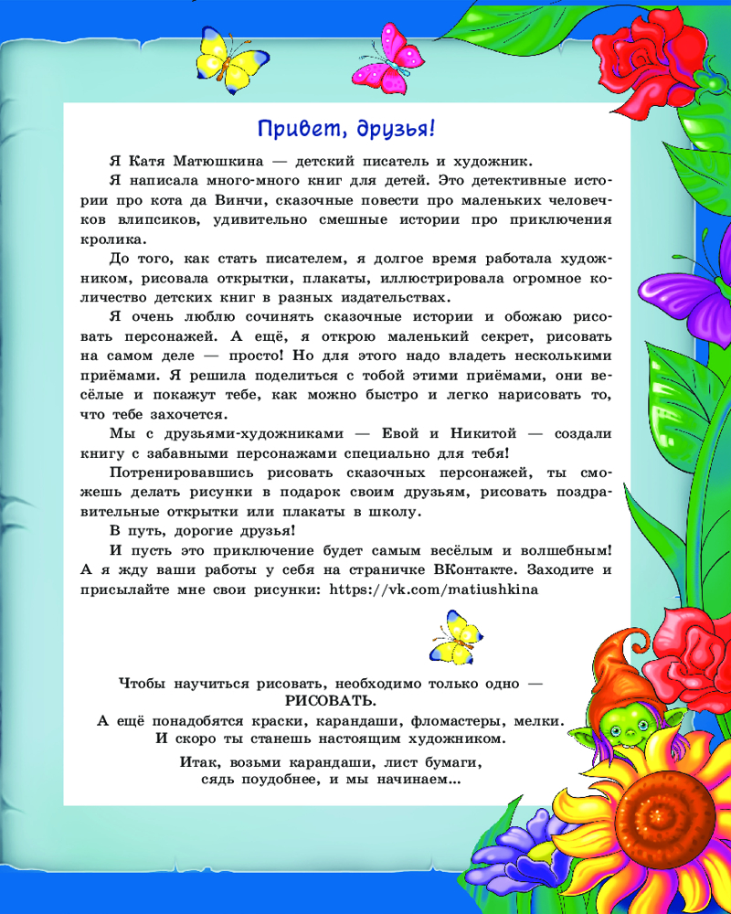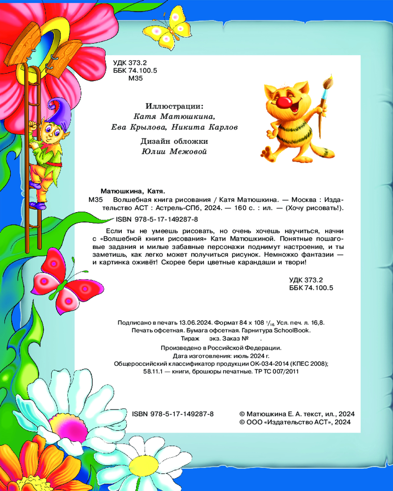 💳 Оплатить за товар можно при получении 🇰🇿 Есть бесплатная доставка по Казахстану от 1 дня 🎁 Копите бонусы с каждой покупки Серия: Хочу рисовать! Если ты не умеешь рисовать, но очень хочешь научиться, начни с «Волшебной книги рисования» Кати Матюшкиной. Понятные пошаговые задания и милые забавные персонажи поднимут настроение, и ты заметишь, как легко может получиться рисунок. Немножко фантазии — и картинка оживёт! Скорее бери цветные карандаши и твори! |