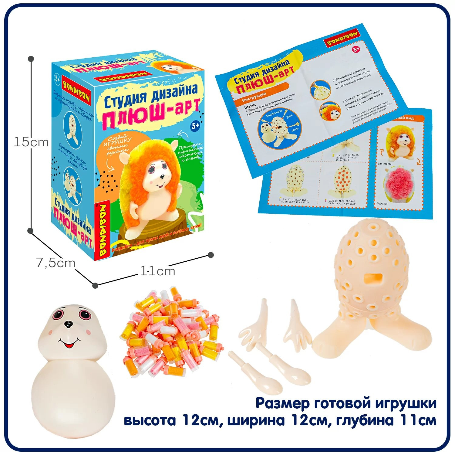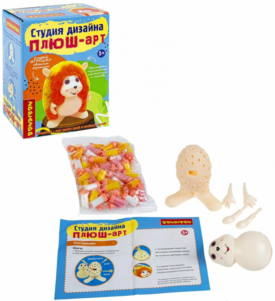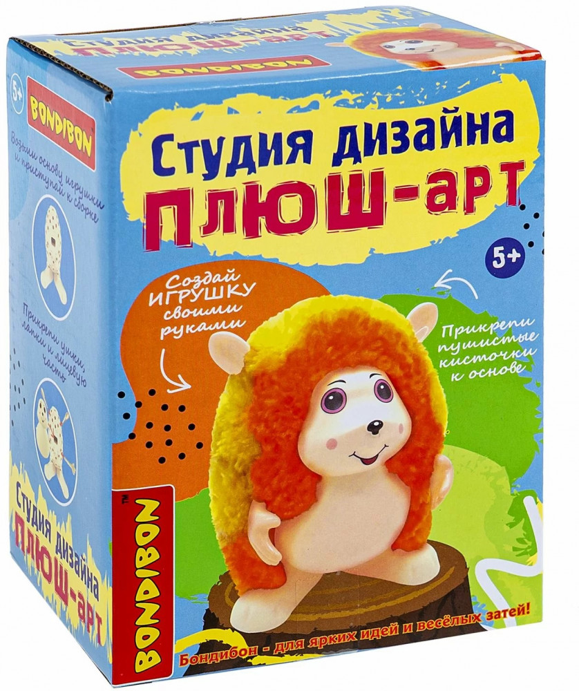 Создайте игрушку своими руками вместе с набором для детского творчества из серии Студия дизайна от Bondibon. Этот конструктор позволит вашему ребенку погрузиться в мир рукоделия, развивая фантазию, мелкую моторику и концентрацию внимания. Процесс создания игрушки прост и увлекателен: прикрепите желтые и оранжевые пушистые кисточки к пластиковой основе, украсьте игрушку лицевой частью, ушками и лапками. Распушите помпоны — простая поделка, которую может собрать даже малыш, готова.