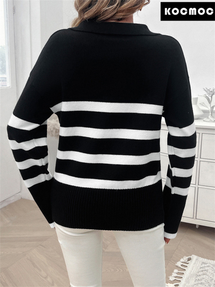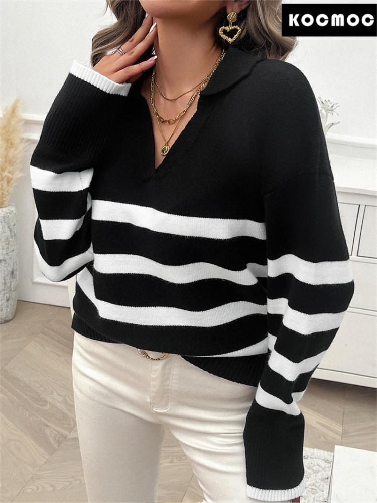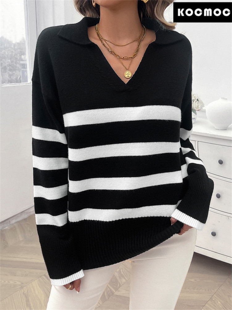 Эта свободная свитер с полосатым дизайном и контрастными цветами идеально сочетает в себе повседневность и моду. Этот свитер не только отличается высоким комфортом, но и его уникальный дизайн с полосками и отложным воротником добавляет изюминку в ваш повседневный стиль.