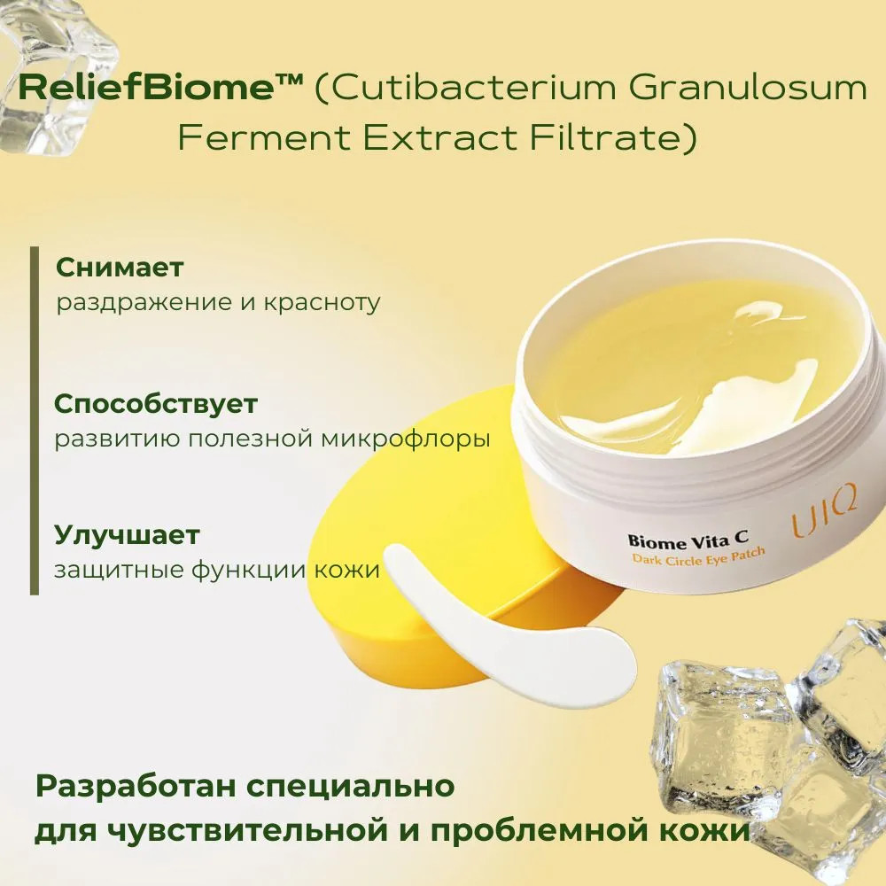 UIQ Патчи для глаз осветляющие «Biome Vita C Dark Circle Eye Patch»В данный момент этот товар отсутствует в продаже. Возможно, у нас найдется аналогичный или похожий товар здесь. Патчи для век с витамином С UIQ Biome Vita C Dark Circle Eye Patch осветляют область вокруг глаз, уменьшают пигментные пятна, снимают отёчность и тёмные круги, не вызывают раздражения. Смягчают, увлажняют и разглаживают нежную кожу век, снимают припухлости. Препятствуют появлению новой пигментации, укрепляют защитный барьер и нормализуют микробиоту кожи, поддерживая местный иммунитет. Содержат 2 формы витамина C: 3-0-этил аскорбиновую кислоту, стабильную форму, и аскорбиновую кислоту — кислую форму. Витамин C осветляет пигментные пятна, борется с признаками фотостарения, оказывает противовоспалительное и антиоксидантное действие, а также стимулирует выработку коллагена, повышая упругость и плотность. |