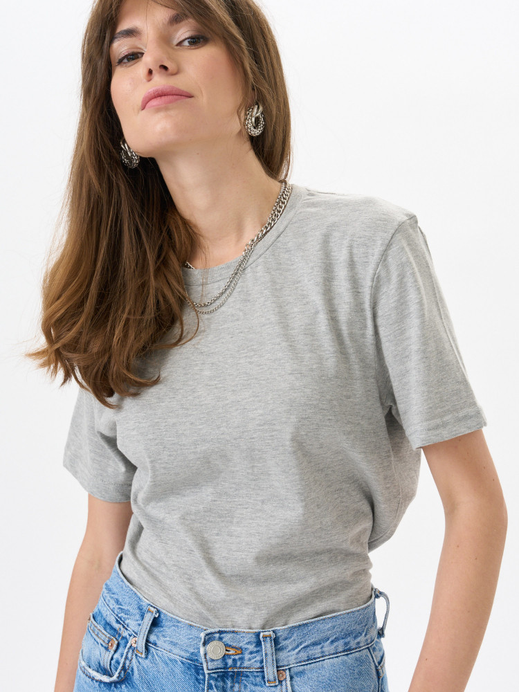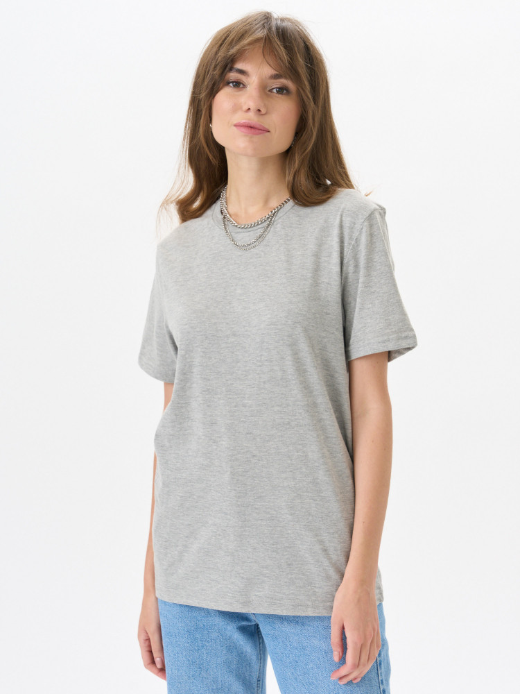 Футболка 48 размера, рост 164, на 50 размер рост 160 свободная. Очень хороший пошив, аккуратный, горловина обработана отлично. Ткань плотная, трикотажная, мало тянущаяся. Фасон прямой, со спущенным плечом. Цвет не такой яркий, как на фотографии сайта, он именно песочный.