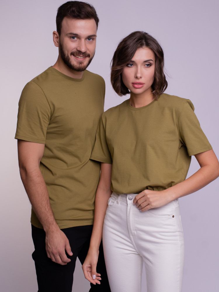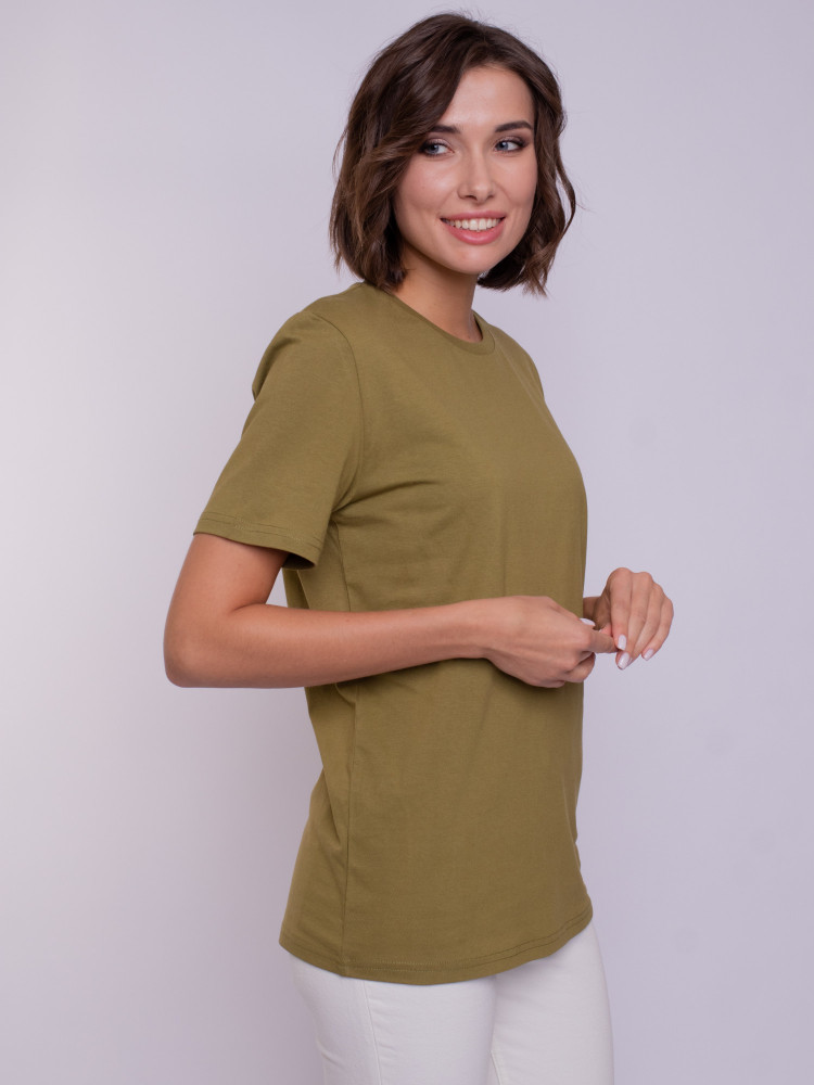 Футболка 48 размера, рост 164, на 50 размер рост 160 свободная. Очень хороший пошив, аккуратный, горловина обработана отлично. Ткань плотная, трикотажная, мало тянущаяся. Фасон прямой, со спущенным плечом. Цвет не такой яркий, как на фотографии сайта, он именно песочный.