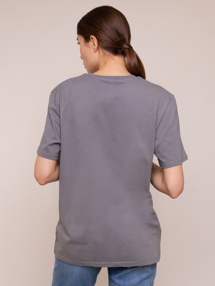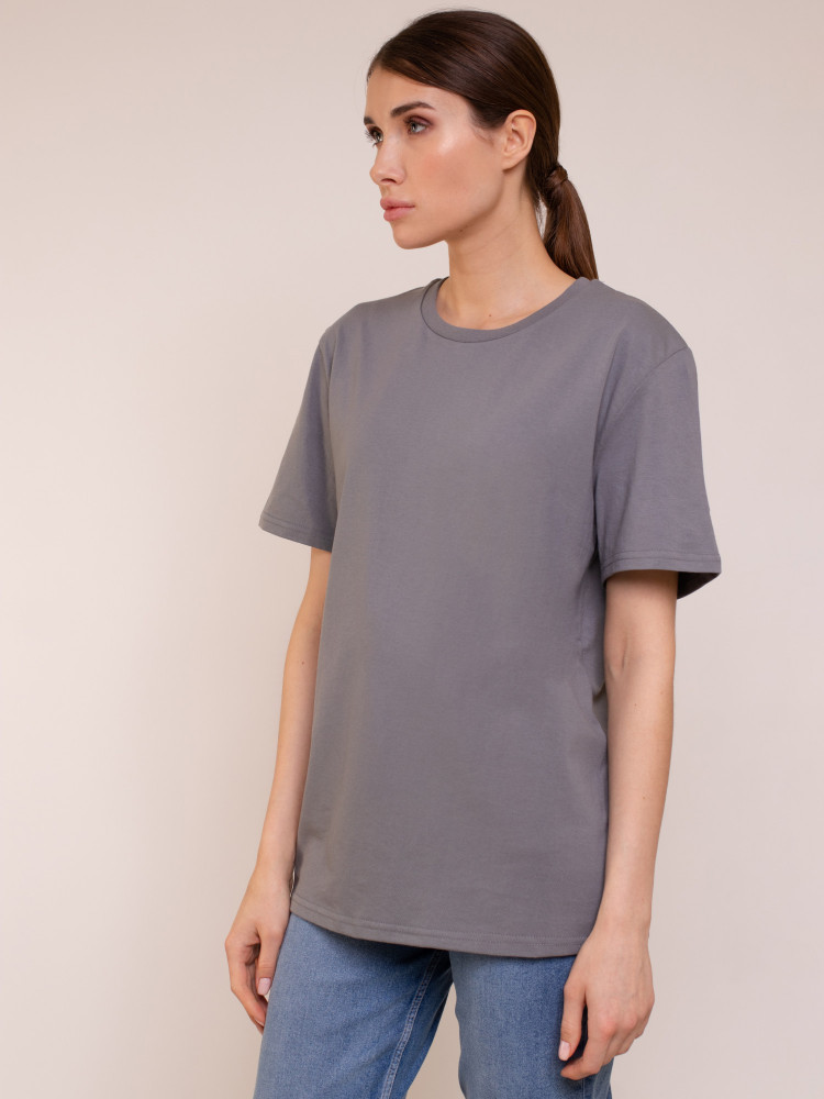 Футболка 48 размера, рост 164, на 50 размер рост 160 свободная. Очень хороший пошив, аккуратный, горловина обработана отлично. Ткань плотная, трикотажная, мало тянущаяся. Фасон прямой, со спущенным плечом. Цвет не такой яркий, как на фотографии сайта, он именно песочный.