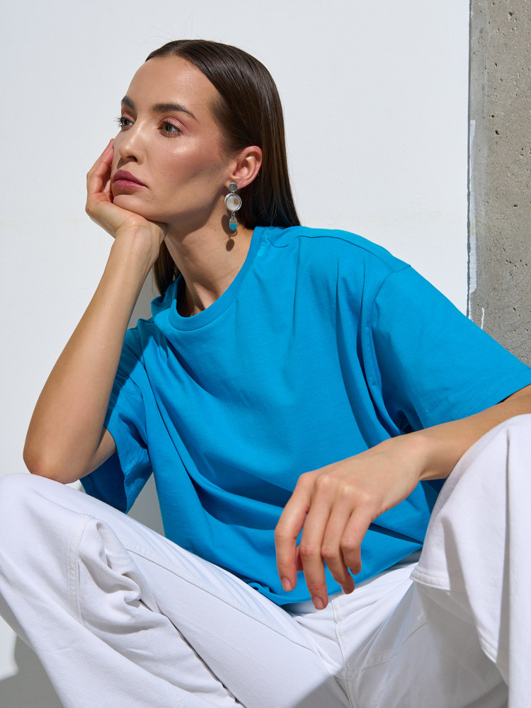 Отличная базовая футболка. Не короткая и не длинная - то что нужно. Оверсайз можно на размер меньше взять