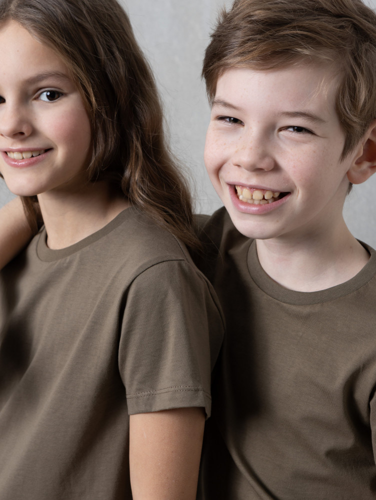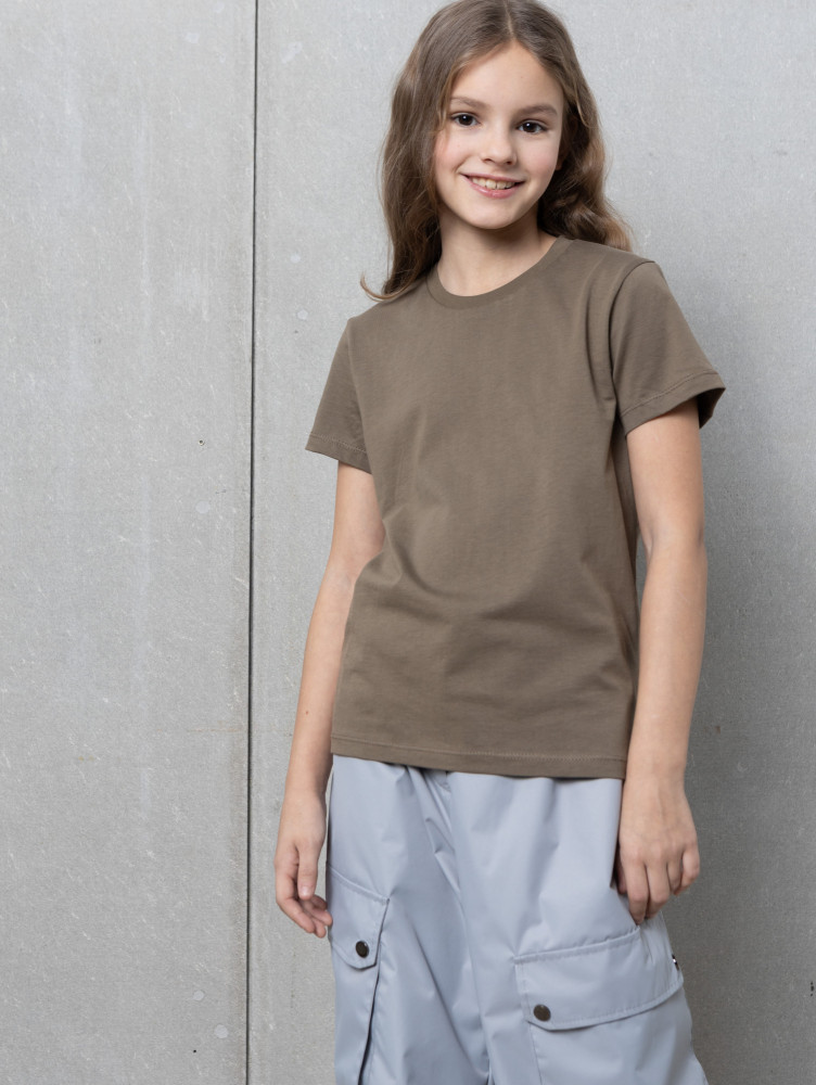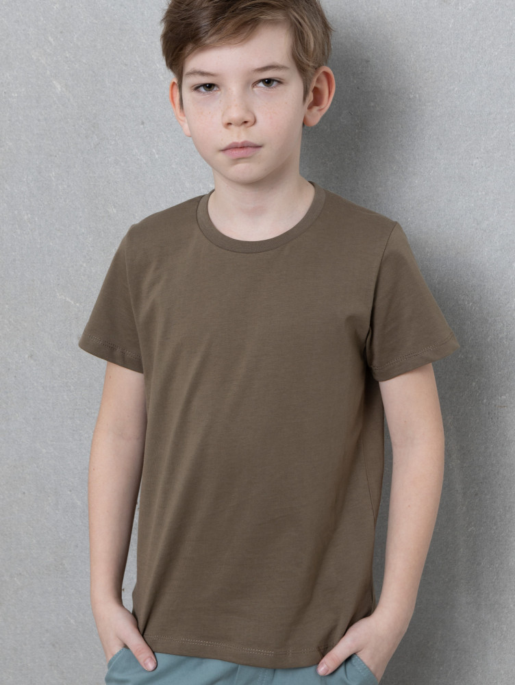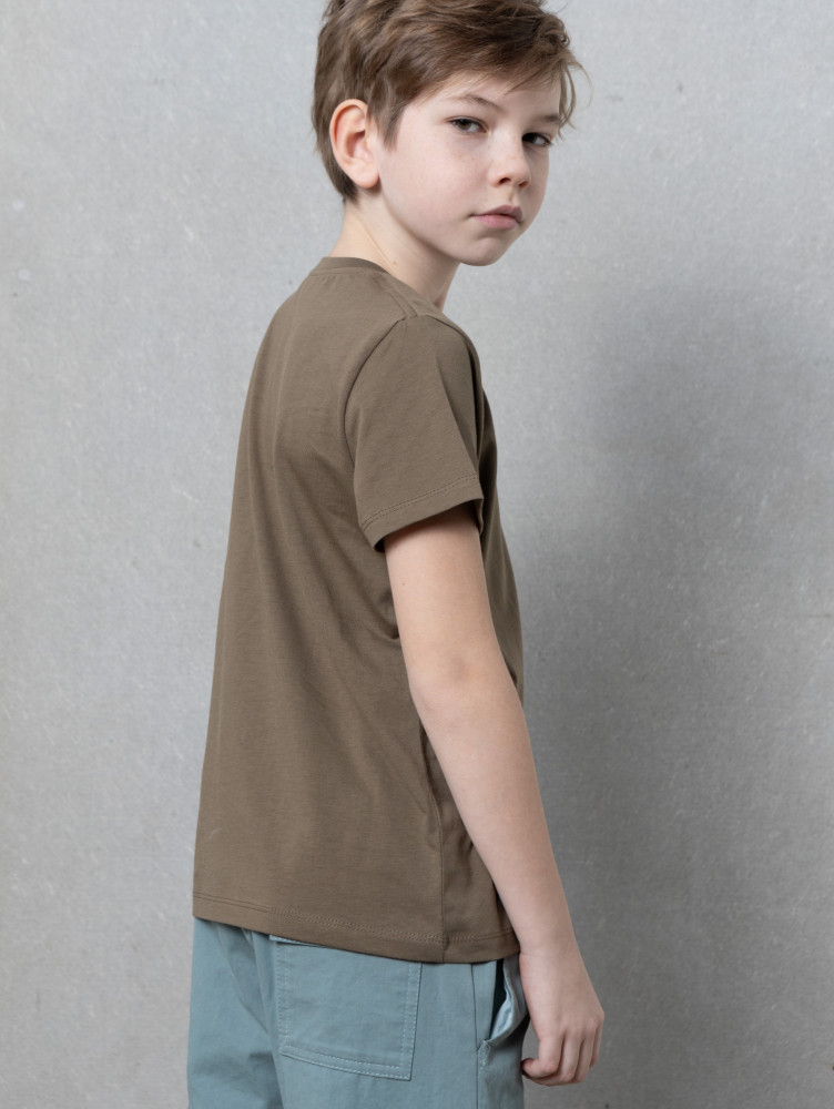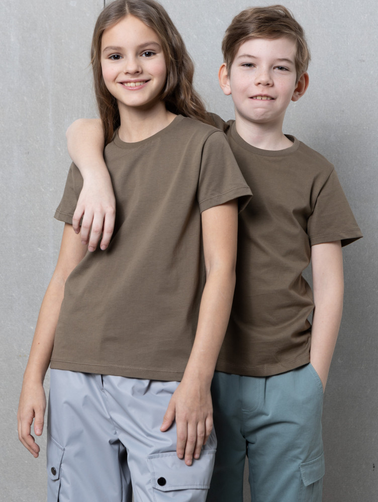 Две футболки одинакового размера, но разного цвета сильно отличаются в крое. Пыльная олива больше соответствует 116 размеру нежели 122.
