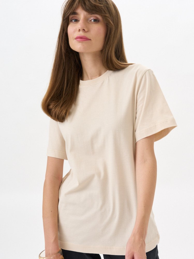 плотная футболка, базовая, очень приятная к телу, сидит отлично.