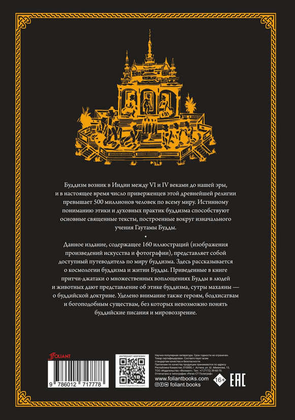 💳 Оплатить за товар можно при получении 🇰🇿 Есть бесплатная доставка по Казахстану от 1 дня 🎁 Копите бонусы с каждой покупки Серия: Мифы и легенды Буддизм возник в Индии между VI и IV веками до нашей эры, и в настоящее время число приверженцев этой древнейшей религии превышает 500 миллионов человек по всему миру. Истинному пониманию этики и духовных практик буддизма способствуют основные священные тексты, построенные вокруг изначального учения Гаутамы Будды. Буддийские традиции сформировали огромный пласт мифов, большинство сюжетов которых посвящены жизни Будды. К примеру, 550 притч-джатак рассказывают о юности Будды и его Великом отречении, а также предыдущих воплощениях в людей и животных. Говорится в них и о его семье, в частности матери Махамайе, которой перед рождением сына приснился белый слон, и двоюродном брате Будды, Девадатте, монахе, восставшем против своего учителя и попытавшемся его убить. Буддийская литература содержит множество аллегорических рассказов, например «О болтливой черепахе», или пересказывает сюжеты индийского эпоса «Рамаяна». |