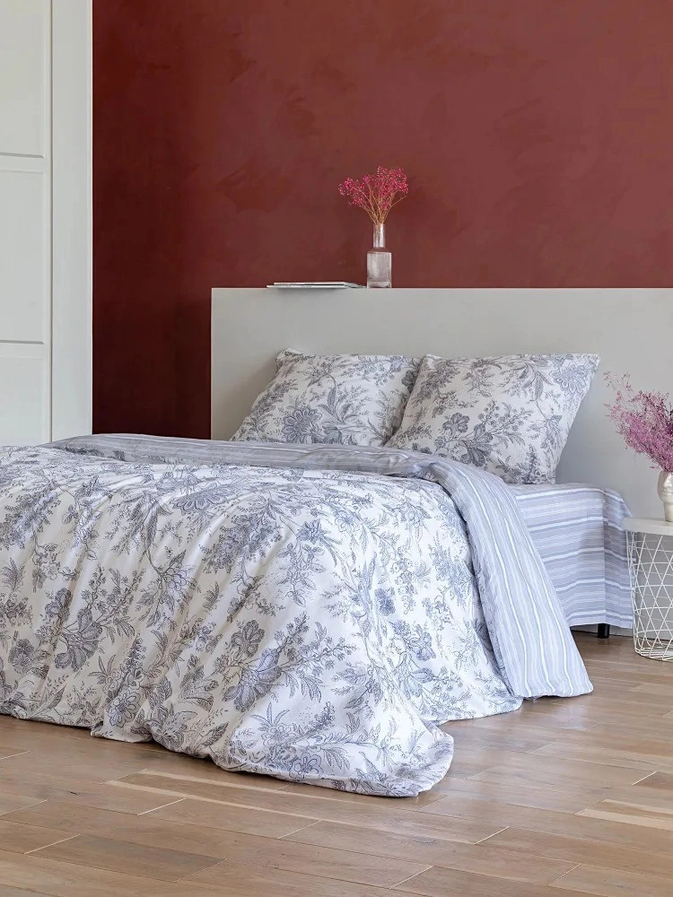 Ботаническая тема комплекта Irish Blue была вдохновлена эстетикой и доминирующим цветом герба Ирландии. Художественный узор придает белой ткани некую воздушность, освежив её синими растениями. Перкаль из 100% хлопка — мягкая, как лепестки цветов, и прочная ткань, за которой легко ухаживать. Вы будете долго наслаждаться приятной перкалью, поскольку она хорошо сохраняет насыщенность цвета и оригинальную форму.