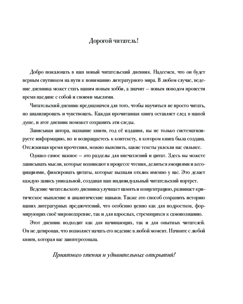 Читательский дневник для литературных открытий