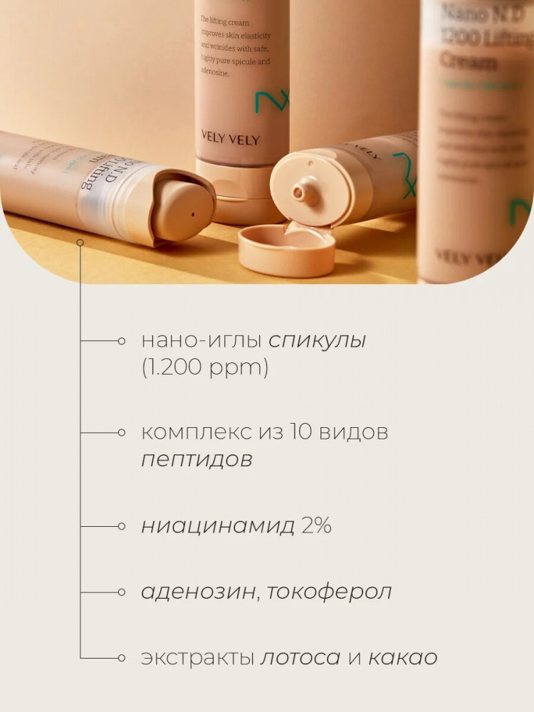 VELY VELY Крем-лифтинг для кожи лица «Nano N.D 1200 Lifting Cream»В данный момент этот товар отсутствует в продаже. Возможно, у нас найдется аналогичный или похожий товар здесь. Лифтинг-крем c нано-иглами спикулы обеспечивает стимулирующее действие, улучшает клеточный обмен и кровообращение, разглаживает морщины и подтягивает овал лица, заметно повышая эластичность и упругость тканей, глубоко увлажняет и запускает мощный процесс регенерации. Продукт включает в себя нано-иглы спикулы, обладающих ярко выраженными омолаживающими свойствами. Компонент также удаляет ороговевший слой эпидермиса, оказывая выравнивающий эффект, и контролирует работу сальных желез, предупреждая появление воспалений и излишней жирности кожного покрова. Средство обладает нежной тающей текстурой, легко наносится и распределяется, быстро впитывается, не оставляет липкости и жирной пленки и мгновенно дарит коже чувство комфорта. |