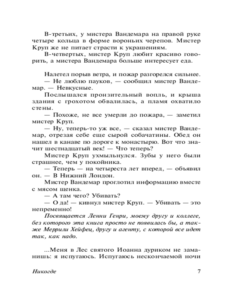 💳 Оплатить за товар можно при получении 🇰🇿 Есть бесплатная доставка по Казахстану от 1 дня 🎁 Копите бонусы с каждой покупки Серия: Эксклюзивная классика (Лучшее) Под Лондоном скрывается место, о котором большинство людей даже не подозревает. Город монстров, святых, убийц и ангелов, рыцарей в сияющих доспехах и бледных девушек в черном бархате. Город тех, кто провалился сквозь трещины жизни. Молодой человек по имени Ричард, совершив акт доброты, оказывается в знакомом и в то же время странном мире под названием Никогде... |