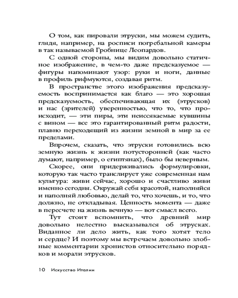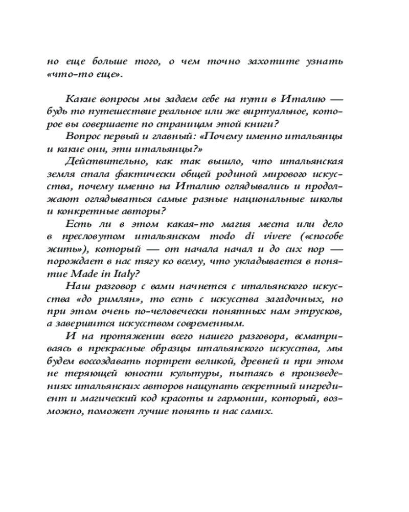 Искусство ИталииВ данный момент этот товар отсутствует в продаже. Возможно, у нас найдется аналогичный или похожий товар здесь. Серия: МиниАрт. Мастера и шедевры Италия для большинства людей — синоним искусства как такового, а имена титанов Возрождения первыми приходят на ум любому, даже неискушенному любителю прекрасного. Но итальянское искусство — это не только Леонардо, Рафаэль и Микеланджело, это огромный, многоликий мир, особая лаборатория красоты и гармонии, в которой в течение многих веков формировался европейский эстетический идеал. Об истории и основных процессах, о художниках, архитекторах и скульпторах и, конечно, о секретных ингредиентах культуры, делающих ее узнаваемой и самобытной, вы узнаете из этой книги. |