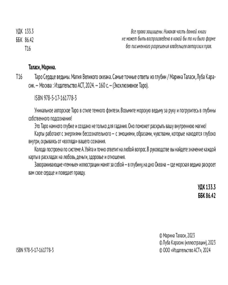 💳 Оплатить за товар можно при получении 🇰🇿 Есть бесплатная доставка по Казахстану от 1 дня 🎁 Копите бонусы с каждой покупки Серия: Эксклюзивное Таро (Коробка с картами + руководство) Одна из самых красивых и загадочных колод Таро, связанная со стихией Воды в ее космическом воплощении. |