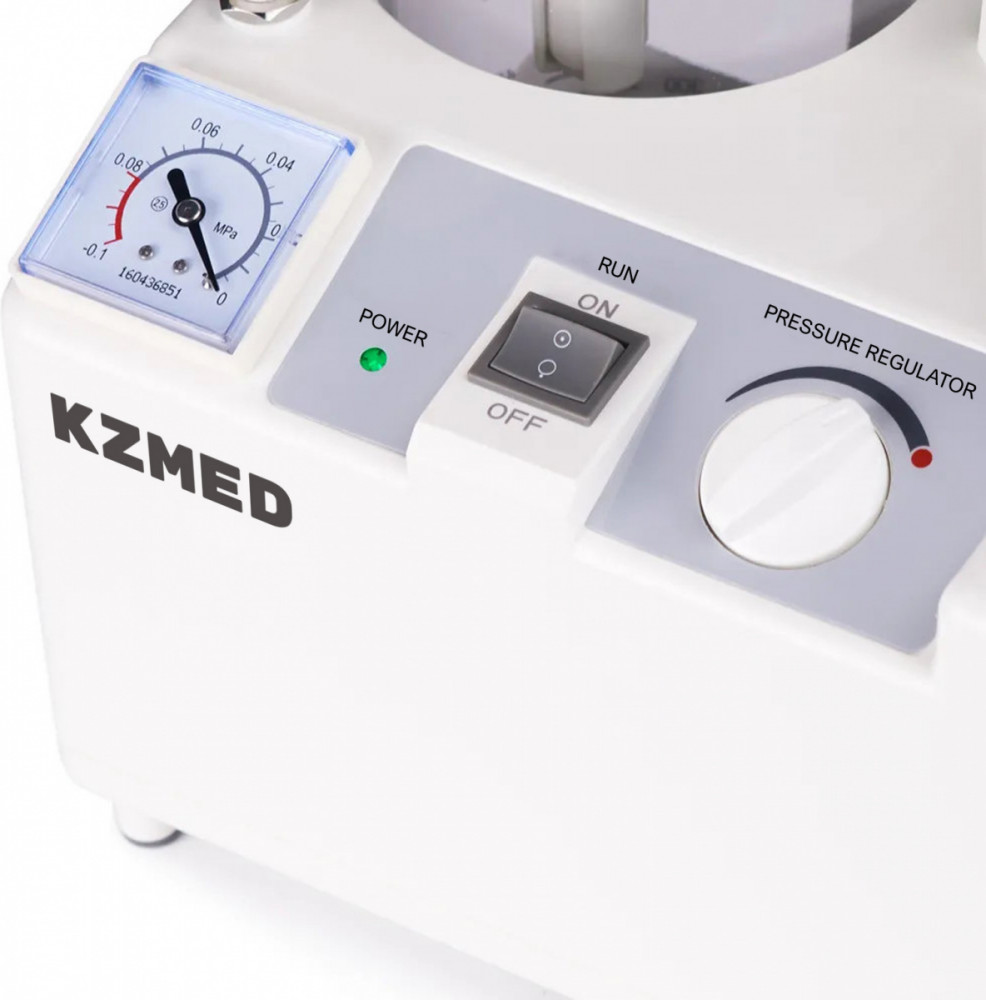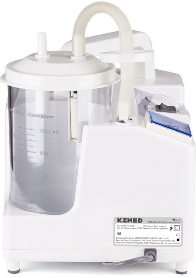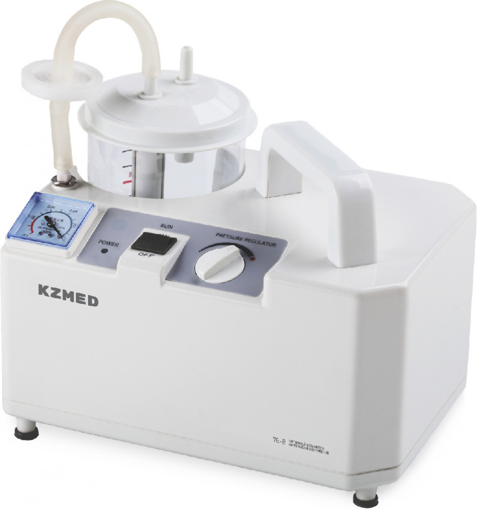 Отсасыватель хирургический электрический «KZMED» 7Е-B имеет небольшие габариты, поэтому его можно переносить в помещении за удобную ручку. Для включения и управления прибором предназначена одна кнопка и механический регулятор. В комплекте с оборудованием предусмотрен специальный детский катетер.