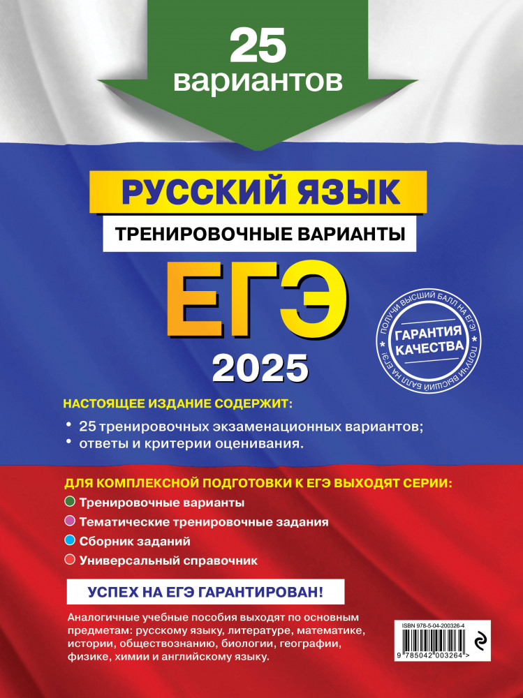 Издание предназначено для подготовки учащихся старших классов к ЕГЭ по русскому языку. Пособие включает 25 тренировочных вариантов, соответствующих структуре экзаменационной работы и составленных с учетом требований ЕГЭ, ответы к заданиям и критерии оценивания. Издание будет полезно учителям русского языка, так как дает возможность эффективно организовать учебный процесс и подготовку к экзамену.