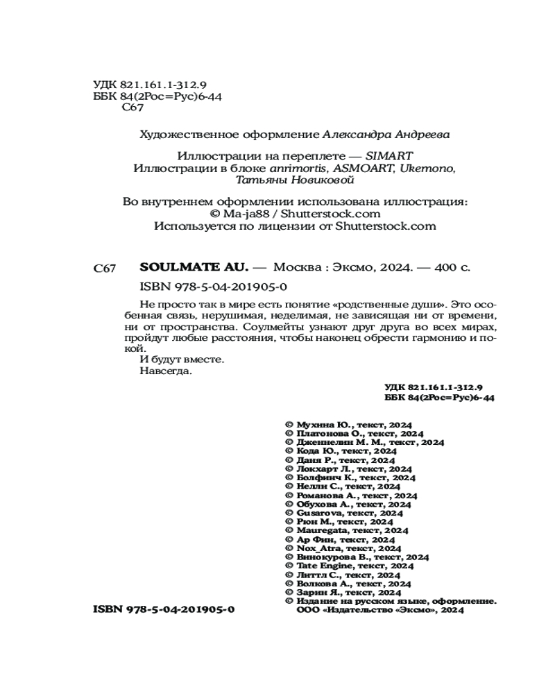 💳 Оплатить за товар можно при получении 🇰🇿 Есть бесплатная доставка по Казахстану 🎁 Копите бонусы с каждой покупки Серия: Young Adult. Драббломания Не просто так в мире есть понятие «родственные души». Это особенная связь, нерушимая, неделимая, не зависящая ни от времени, ни от пространства. Соулмейты узнают друг друга во всех мирах, пройдут любые расстояния, чтобы наконец обрести гармонию и покой. И будут вместе. Навсегда. |