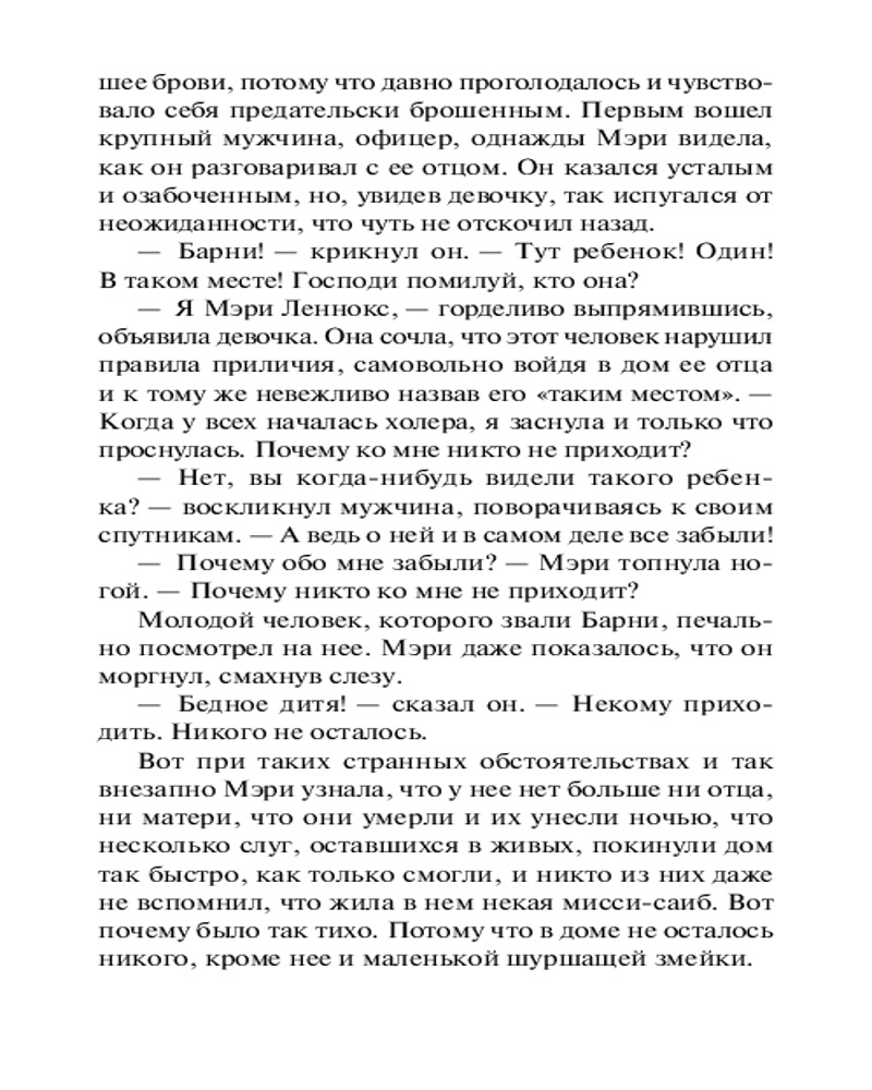 💳 Оплатить за товар можно при получении 🇰🇿 Есть бесплатная доставка по Казахстану от 1 дня 🎁 Копите бонусы с каждой покупки Серия: Эксклюзивная классика В центре романа «Таинственный сад» — десятилетняя Мери Леннокс, вернувшаяся из Индии в Англию после смерти родителей. В поместье ее дяди Арчибальда Крэвена Мери вынуждена привыкать к совершенно другой жизни, непохожей на ту, что была у нее до сих пор. Однажды девочка узнает о загадочном заброшенном саде, в который запрещено входить, и решает разыскать его. Вместе с новыми друзьями Мери предстоит проникнуть в тайны этого удивительного места, преображающего души людей. |