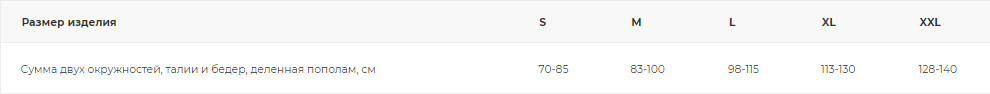 • согласно полученному результату, подбирается размер по таблице.