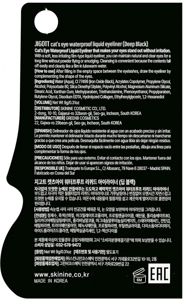 Jigott Подводка для глаз «Waterproof Liquid Eyeliner», оттенок Deep Black
